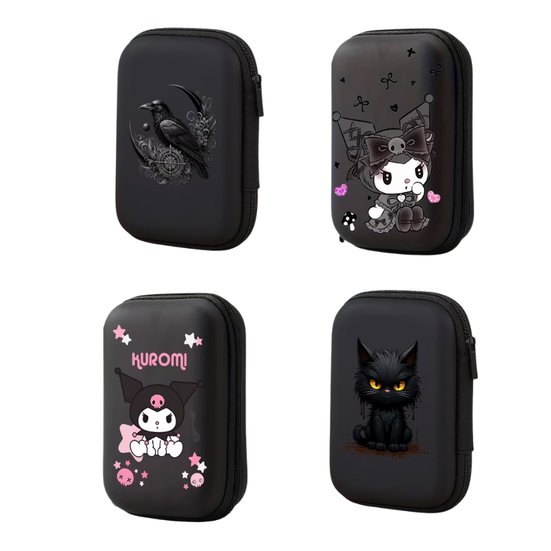 Keep your essentials safe with these small carry cases for earpods, earphones, and cables, designed in sleek black with bold printed designs. Built with a durable hard shell exterior, these cases provide reliable protection against drops, pressure, and everyday wear. Whether tucked into your handbag, backpack, or laptop case, they safeguard your accessories with confidence and style.